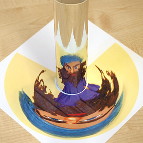 Do tej anamorfozy, podobnie jak do poprzedniej, będziemy potrzebowali lustrzanej powierzchni. Tym razem w kształcie stożka. Wybieramy opcję Conical mirror.