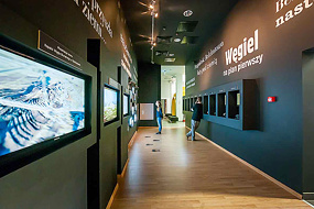 Wystawa znajduje się na dwóch kondygnacjach budynku, a oprowadza po niej multimedialna rodzina Gigusiów Brunatnych (Woltuś, Dżulka, Profesor Ohm, Robot o Węglowym Sercu i Gaja).