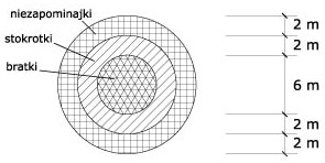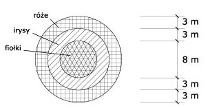 Zad. 3. (3 pkt) Klomb w kształcie koła podzielono na trzy części w sposób przedstawiony na rysunku. Dla których kwiatków przeznaczono najmniejszą część?
