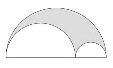 Zad. 6. (3 pkt) Oblicz pole i obwód figury z rysunku, której brzeg składa się z trzech półokręgów, przy czym promień największego półokręgu ma 15 cm, a promień średniego jest dwa razy większy od promienia najmniejszego półokręgu.