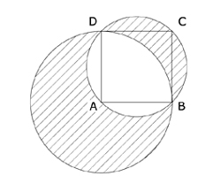 Zad. 8*. (2 pkt) Na kwadracie ABCD o boku długości 1 opisano okrąg, a następnie wykreślono okrąg o środku w punkcie A i promieniu AB. Oblicz pole zakreskowanej figury.
