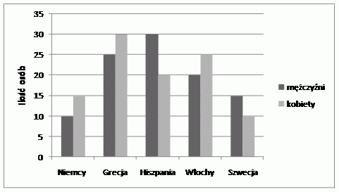 Zad. 3. (5 pkt) 200 losowo wybranych mieszkańców Jeleniej Góry zapytano, który z krajów europejskich odwiedziliby najchętniej w czasie wakacji. Uzyskane odpowiedzi ilustruje diagram.