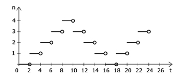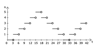 Zad. 2. (4 pkt) Reklama świetlna składa się z pięciu części różnych kolorów. Każdy stan reklamy trwa 3 sekundy. Najpierw jest ciemno, potem świeci jeden kolor, potem dwa, potem trzy, potem cztery, potem pięć, a następnie gasną w odwrotnej kolejności niż się zapalały i cały proces zaczyna się od początku. Niech t oznacza czas w sekundach, a n – liczbę barw świecących się w reklamie. Funkcja f określa n w zależności od t.