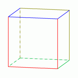 Spójrzmy na model sześcianu (rys.1). Można zauważyć, że wszystkie jego krawędzie da się podzielić na cztery grupy po 3 krawędzie (rys. 2).