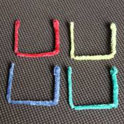 To spostrzeżenie pozwala na bardzo proste wykonanie „wyciorowego” modelu sześcianu. Przygotowujemy 4 druciki. Po zagięciu haczyków na końcach składamy każdy z nich na trzy równe części i formujemy w kształt litery U (fot. 3). Kolejne etapy składania modelu ilustrują zdjęcia 4 i 5. Gotowy model przedstawia fot. 6. Kliknięcie w zdjęcie otwiera w nowym oknie duży obrazek.