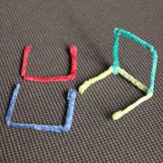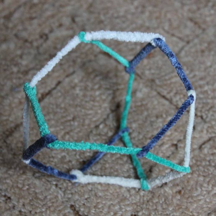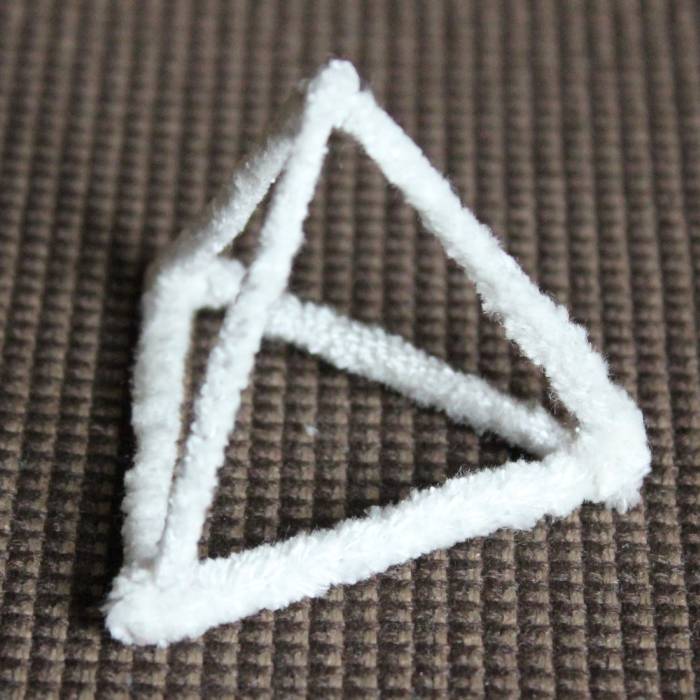 W pierwszej części tekstu o modelach szkieletowych z wyciorów opisana została metoda budowania modeli wielościanów, w których wierzchołkach spotykają się cztery krawędzie. W przypadku czworościanu foremnego i sześcianu (a także wielu innych brył) w jednym wierzchołku schodzą się tylko trzy krawędzie. Chcąc zatem wykonać ich modele, należy nieco zmodyfikować opisaną wcześniej metodę.