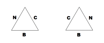Oglądając model z bliska, możemy przekonać się, że wszystkie możliwe sposoby użycia czterech kolorów do pomalowania boków kwadratu są na nim zrealizowane. Co więcej – z czterech kolorów B, N, C, Z można na cztery sposoby wybrać trzy z nich: BNC, BNZ, BCZ i NCZ. Każdej trójki kolorów można użyć na dwa sposoby do pokolorowania boków trójkąta – rys. 20.