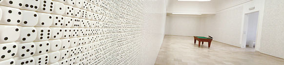 Ściany pawilonu polskiego pokrywa tapeta wypełniona szczelnie kośćmi do gry. Po obu stronach wejścia oprawione w ramki wiszą instrukcje gry w kilkudziesięciu językach. Na środku znajduje się stół i jedno krzesło. Na stole zestaw sześciu kości. Światło jest rozproszone, mleczne, odrealniające, wprowadzające nastrój jak ze snu.
