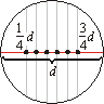 Jeśli ustalimy kierunek prowadzenia cięciw prostopadły do wybranej średnicy, to wybór dowolnej cięciwy jest równoznaczny z wyborem punktu z przedziału [0, 1], a cięciwy dłuższej niż bok trójkąta równobocznego - z wyborem punktu przedziału [1/4, 3/4].