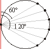 Jeśli ustalimy jeden z końców cięciwy na okręgu i poprowadzimy w tym punkcie styczną, to wybór dowolnej cięciwy jest równoznaczny z wyborem kąta z przedziału (0, 180) stopni, jaki tworzy ona ze styczną, a cięciwy dłuższej niż bok trójkąta równobocznego - z wyborem kąta z przedziału (60, 120) stopni.