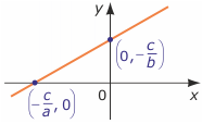 y = - $\frac{a}{b}$x - $\frac{c}{b}$. Pierwiastkiem tego równania jest każda para liczb postaci (r, - $\frac{a}{b}$r - $\frac{c}{b}$), gdzie r$\in$R wybieramy dowolnie. Rozwiązaniem równania jest zbiór wszystkich takich par, czyli {(r, - $\frac{a}{b}$r - $\frac{c}{b}$) : r$\in$R}. Jest to prosta, która przecina oś OX w punkcie (- $\frac{c}{a}$, 0), a oś OY w punkcie (0, - $\frac{c}{b}$).
