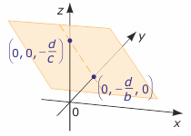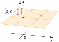 {(p, r, - $\frac{d}{c}$) : p, r$\in$R}. Jest to płaszczyzna pozioma prostopadła do osi OZ w punkcie (0, 0, - $\frac{d}{c}$).