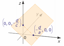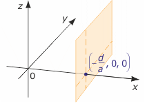 {(- $\frac{d}{a}$, p, r) : p, r$\in$R}. Jest to płaszczyzna pionowa prostopadła do osi OX w punkcie (- $\frac{d}{a}$, 0, 0).