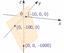 Tworzą one w przestrzeni płaszczyznę poziomą prostopadłą do osi OZ, przechodzącą przez punkt o współrzędnych (0, 0, $-3\frac{5}{6}$).