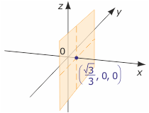 Tworzą one w przestrzeni płaszczyznę pionową prostopadłą do osi OX, przechodzącą przez punkt o współrzędnych (√3/3, 0, 0).