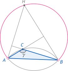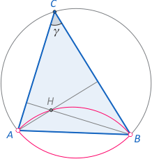 a) na łuku AHB okręgu opisanego na trójkącie ABH o podstawie AB i kącie przy wierzchołku H równym 180°–γ (z wyłączeniem punktów A i B) lub