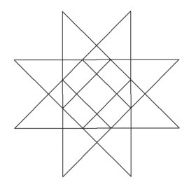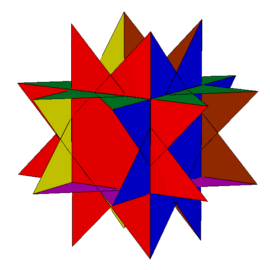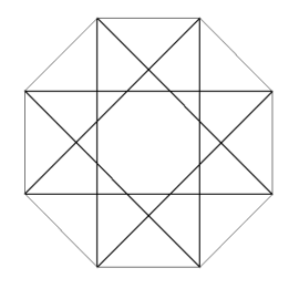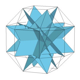 W oparciu o „zwyczajny" ośmiokąt foremny można zbudować foremny ośmiokąt gwiaździsty (rys. 3). Wielokąt taki nazywa się czasem „oktagramem". Tak więc wierzchołki sześcio-ośmiościanu rombowego małego wyznaczają sześć gwiaździstych ośmiokątów foremnych (rys. 4).