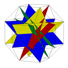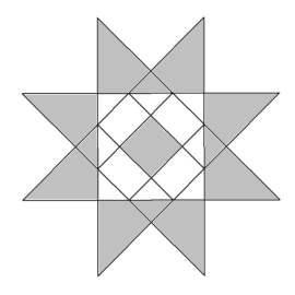 Z rysunku można zauważyć, że ściany trójkątne przecinają oktagramy wzdłuż linii równoległych do krawędzi wyznaczonych przez punkty przecięć innych krawędzi (rys. 10). Obserwacja ta umożliwia wyznaczenie widocznych na zewnątrz modelu części oktagramów (rys. 11).