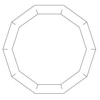 Jego krawędzie możemy pogrupować w 6 dziesięciokątów foremnych (rys. 2, 3).