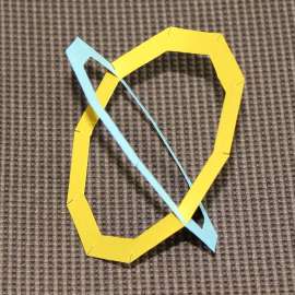 I części tekstu. Dziesięciokąty przecinają się wzdłuż głównych przekątnych i tak też należy wykonać nacięcia. Pierwszy element ma wszystkie nacięcia od zewnątrz (rys. 5), a drugi ma jedną parę nacięć od wewnątrz (rys. 6).