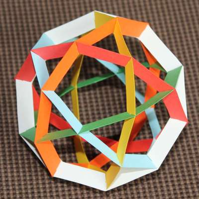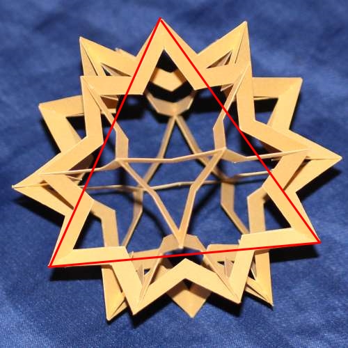 Przyglądając się uważnie otrzymanej konstrukcji, możemy zauważyć, że krawędzie modelu tworzą pentagramy (fot. 8) oraz trójkąty równoboczne (fot. 9). Pentagramów jest 12, a trójkątów 20.