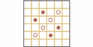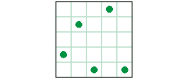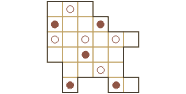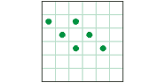 Zadanie 4. Finał międzynarodowy 1999 Stary Szulej, zwany Figowcem, posiadał działkę obsadzoną drzewami figowymi (na rysunku drzewa zaznaczono kropkami). Po jego śmierci trzeba było podzielić ten teren między sześcioro dzieci. Zadanie nie było łatwe, bo każde zażądało parceli tego samego kształtu co pozostałe oraz posiadającej drzewo figowe. Pomóż notariuszowi dokonać podziału. |