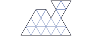 Zadanie 15. Finał międzynarodowy 2005 Podium olimpijskie widziane z boku ma kształt przedstawiony na rysunku. Czy potrafisz rozciąć je według linii kratkowania na trzy kawałki w taki sposób, aby otrzymać dwie przystające figury oraz trzecią, która jest figurą podobną do tamtych dwóch? |