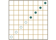 Zadanie 7. Półfinał krajowy 2002 Na działce starego Tomasza rośnie 5 jabłoni i 5 grusz. Podzielił on ten teren między swoich pięciu synów. Każdy z nich otrzymał parcelę w kształcie przystającego wielokąta z jedną gruszą i jedną jabłonią (które nie muszą wypadać w tym samym miejscu). Zaznacz podział na rysunku. |