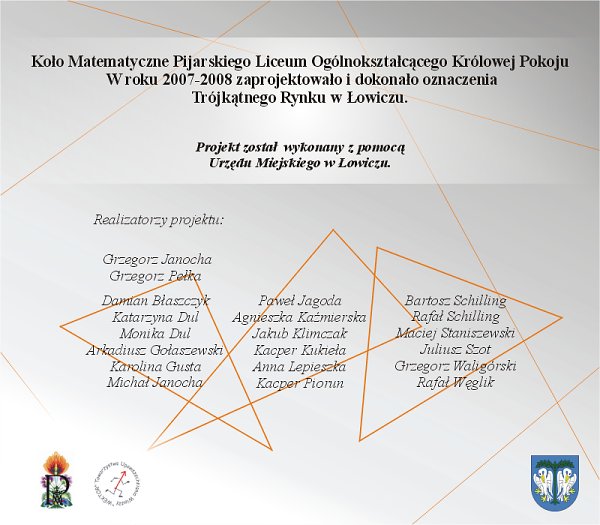 Łowicz słynie z kolorowych wycinanek, często wykorzystywanych na lekcjach matematyki dotyczących różnych rodzajów symetrii. Ale nie wszyscy wiedzą, że jest to prawdopodobnie jedyne miasto w Polsce, które posiada trójkątny Rynek. Na początku 2009 roku został on ochrzczony Rynkiem Matematycznym, a patronat nad tym przedsięwzięciem objęło Koło Matematyczne Pijarskiego Liceum Ogólnokształcącego w Łowiczu.