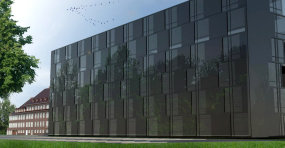 Zupełnie od podstaw zbudowany będzie gmach laboratorium. Futurystyczny projekt (patrz zdjęcie powyżej) do złudzenia(!) przypomina budynek z ulicy La Trobe 1010 na terenie Digital Harbour (przystań cyfrowa) w Melbourne (patrz zdjęcie poniżej), gdzie na terenie dawnych doków znajduje się Centrum Nowoczesnych Technologii. Budynek ten został w 2007 roku laureatem nagrody Królewskiego Australijskiego Instytutu Architektów (Royal Australian Institute of Architects) w kategorii budynków użyteczności publicznej. Nawiązuje do znanego złudzenia optycznego zwanego "kafelki na ścianie kawiarni" opisanego po raz pierwszy przez Richarda Gregory'ego w 1973 roku. Złudzenie nierównoległości prostych równoległych spowodowane jest zaburzeniem tła i kontrastem koloru.