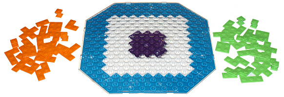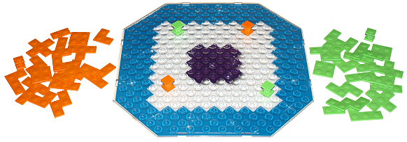 - Na początku każdy gracz otrzymuje 3 kolumny i 18 klocków w wybranym przez siebie kolorze.