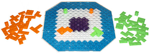 - Począwszy od trzeciego ruchu gracz może w swojej turze ustawić na planszy klocek lub trzecią kolumnę. Postawienie trzeciej kolumny pozwala rozpocząć wykładanie kloców na wolnej części planszy, do której dostęp mieliśmy już przez przeciwników zablokowany.