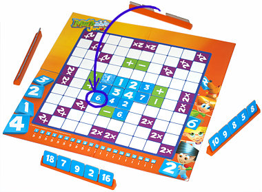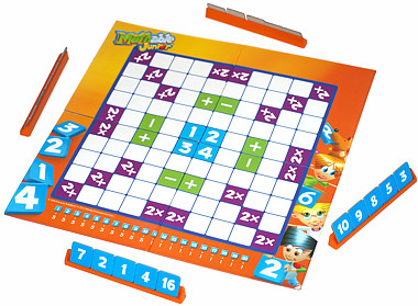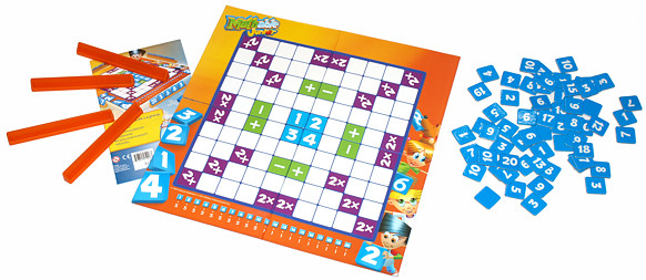 To matematyczna wersja gry Scrabble przeznaczona dla najmłodszych, co nie znaczy, że starsi uczniowie czy dorośli będą się przy niej nudzić. Gra wprowadza w świat działań arytmetycznych i mimochodem trenuje biegłość rachunkową. W trakcie rozgrywki dodaje się i odejmuje liczby w zakresie do 20, a na koniec trzeba jeszcze podliczyć zdobyte punkty, co rozszerza zakres obliczeń. Element rywalizacji i mechanika gry motywują graczy do uważnych i sprawnych rachunków.