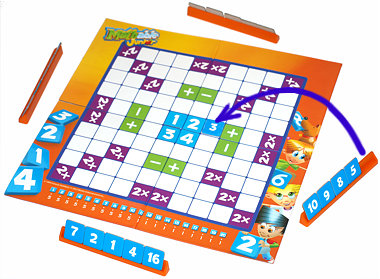 Na zielone pola oznaczone znakami "+" i "-" gracz musi położyć żeton z wynikiem wskazanego działania. Po takim ruchu ma prawo dobrać jeden żeton z puli i dokończyć swoją turę.