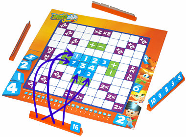 Układanie żetonów rozpoczyna się od środka planszy, dokładając je do niebieskich pól z zaznaczonymi liczbami od 1 do 4. W następnych ruchach liczba na wykładanym żetonie musi być sumą lub różnicą liczb na żetonach sąsiadujących w pionie lub poziomie. Żeton z wynikiem może być umieszczony na prawo, na lewo, powyżej lub poniżej odpowiedniej pary żetonów na planszy, ale nie może być dołożony na skos ani pomiędzy dwoma użytymi do działania liczbami.