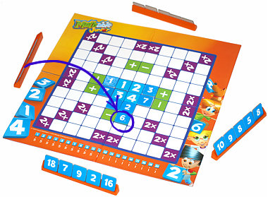 Kartoniki wykładamy na planszę w taki sposób, by każde trzy sąsiednie leżące w jednej linii stanowiły arytmetyczną równość. Znak działania i znak równości są w niej domyślne, jednak gracz po dołożeniu kartonika informuje, jakie działanie wykonał.