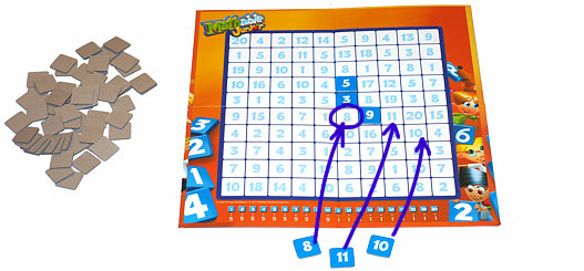 Plansza do gry podzielona jest na 100 kwadratów, a na każdym z nich znajduje się jedna z liczb od 1 do 20. W swoim ruchu gracz losuje trzy żetony, a następnie może umieścić je wszystkie na planszy w taki sposób, aby dokładany żeton był sumą lub różnicą liczb znajdujących się na sąsiednich żetonach leżących już na planszy, a jeśli sytuacja na to nie pozwala (np. na początku gry, kiedy żetonów jest zbyt mało), wykłada go na pole oznaczone taką samą liczbą.