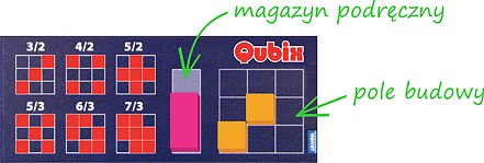 - Na polu budowy i w magazynie podręcznym klocki należy układać poziomo (podstawą ma być ściana o największym polu).