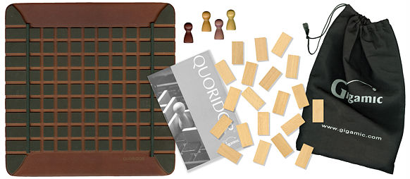 Wszystkie elementy (kwadratową planszę do gry z 81 polami, 4 pionki i 20 płotków) wykonano z drewna solidnie i starannie. W pudełku znajduje się również instrukcja i woreczek do przechowywania drobnych elementów gry.