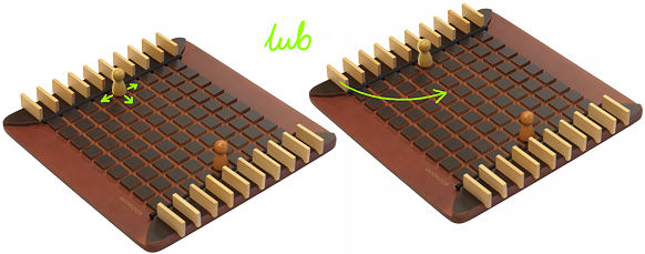 Jeśli płotek znajduje się bezpośrednio za przeskakiwanym pionkiem, to przeskakujący może zająć pole na prawo lub na lewo od pionka przeciwnika.