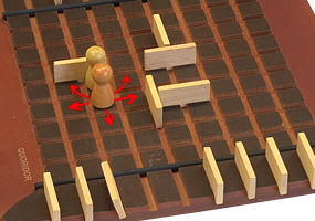 Płotki ustawia się w szczelinach planszy tak, aby oddzielały prostokąty składające się z dwóch kwadratowych pol każdy.