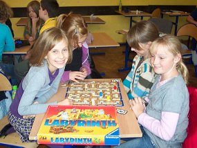 - Złośliwy labirynt - Ze swoich kart ze skarbami wybieramy jedną i podsuwamy przeciwnikowi, którego celem jest ten skarb wydostać.