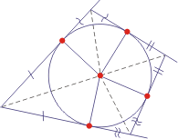 - Dwusieczne kątów czworokąta wypukłego przecinają się w jednym punkcie wtedy i tylko wtedy, gdy sumy długości przeciwległych boków tego czworokąta są równe.