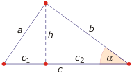 $$a^2 = b^2 + c^2 - 2bc \cdot \cos \alpha \ ;$$