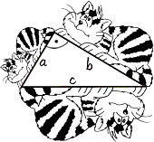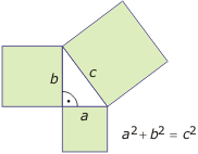 - W trójkącie prostokątnym suma kwadratów długości przyprostokątnych jest równa kwadratowi długości przeciwprostokątnej.