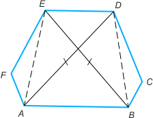 Zad. 3. W świetle założeń trapezy ABCD, BCEF i ACDF są równoramienne. Otrzymujemy następujące równości miar kątów: |∡BAD|=|∡ADE|=|∡ABE|=|∡BED|, |∡ADC|=|∡FAD|=|∡DCF|=|∡FAD| oraz |∡FED|=|∡EBC|=|∡BCF|=|∡CFE|.