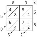 Cyfry czynników umieszczamy w nagłówkach tabeli (u góry i po prawej stronie). Następnie cyfry jednego z czynników mnożymy przez cyfry drugiego, a ich dwucyfrowe iloczyny wpisujemy w odpowiednie pola tabliczki (leżące na skrzyżowaniu kolumny i wiersza z cyframi wchodzącymi do danego iloczynu). Cyfry sumujemy wzdłuż kolejnych linii prowadzonych w kierunku przekątniowym, w razie potrzeby wykonując przeniesienie do wyższego rzędu. Wynik czytamy od strony lewej do prawej.