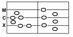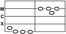 Na rysunku poniżej naszkicowano stół obliczeniowy, na którym po prawej stronie za pionową linią ułożono żetony reprezentujące odjemną, a po lewej reprezentujące odjemnik. Wartość żetonu zależała od jego położenia na poziomych liniach oznaczających kolejne rzędy dziesiętne. Jeśli żeton leżał pomiędzy liniami, to reprezentował połowę wartości następnego rzędu.