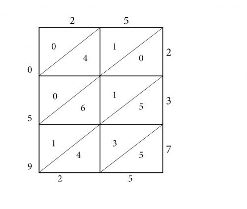 b) mnożenie chińskie zwane też metodą gelosia lub mnożeniem "na żaluzję"