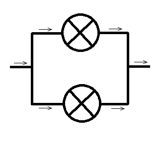 Pierwszym z nich będzie równoległe połączenie żarówek w obwodzie elektrycznym. Wyobraźmy sobie sytuację, w której dwie żarówki są umieszczone w obwodzie elektrycznym jak na rysunku (¤ oznacza żarówkę a strzałka zwrot prądu w obwodzie):